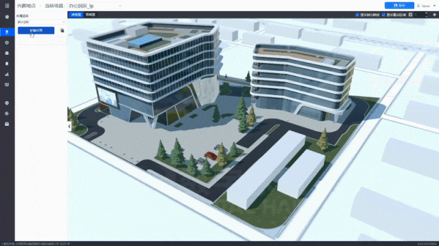 在孪易 IOC 管理后台,通过场景配置,分别将 同一园区的 端渲染园区场景服务 和 流渲染园区场景服务 地址配置到孪易 IOC后台。根据相同的场景展示需求,配置园区的位置、层级结构、关键区域、关键地标点。