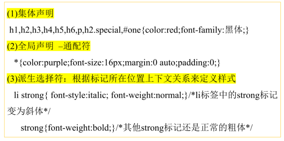 选择器为H1,H1在HTML中为一级标题标记,因此重新定义了标题标记的样式,网页中所有