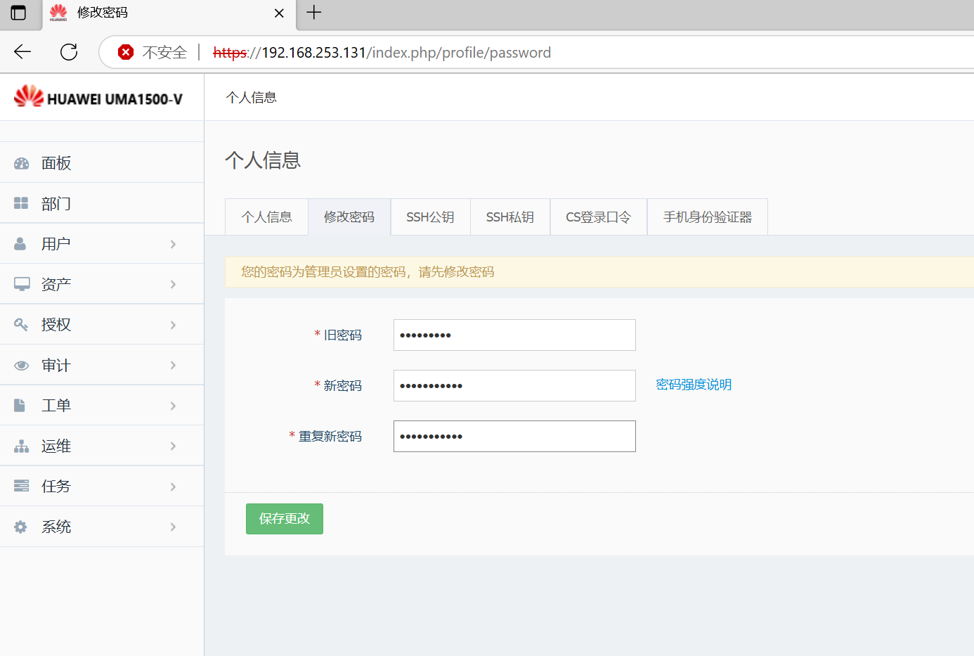 (https://ip),输入用户名和密码(出厂用户和密码为:admin/Admin@123)及验证码,单击