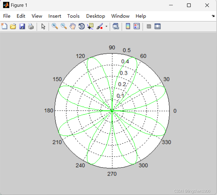 polar(theta, rho, 'g-'); % 绿色实线绘制极坐标曲线