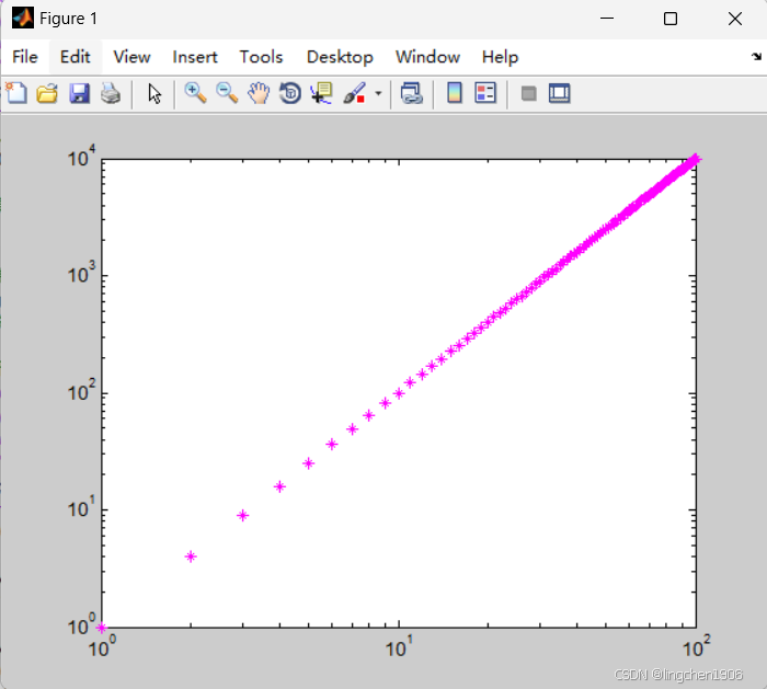 loglog(x, y, 'm*'); % 双对数坐标,紫色星号标记