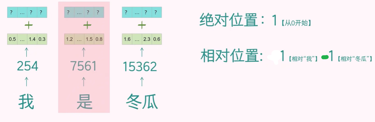 此外,位置向量还可以分为绝对位置嵌入和相对位置嵌入,后者根据 token 之间的相对位置来计算,目前常用。