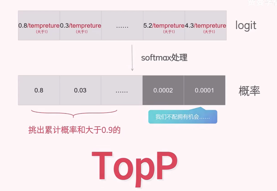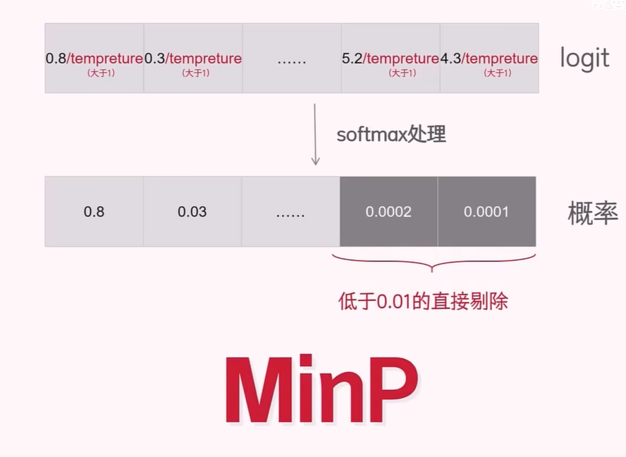 可以设置一个最小概率阈值,过滤掉预测概率过低的词,但这种方法在实际应用中较少单独使用,更多是作为 TopP 的补充。