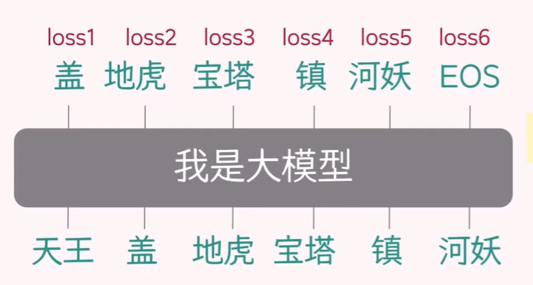 训练时,模型通过一次前向传播计算出这 6 个位置的预测概率,并与真实标签进行比较,计算损失(loss),然后通过反向传播更新模型参数。这种错位 1 的设计,使得模型能够将序列中的每个 token 预测任务拆分成多个不同的子任务,同时使用前缀或掩码技术从输入和目标中提取数据,可以通过查看该表格的两列内容,左面这一列的完整内容就是输入,右面这一列的完整内容就是目标。