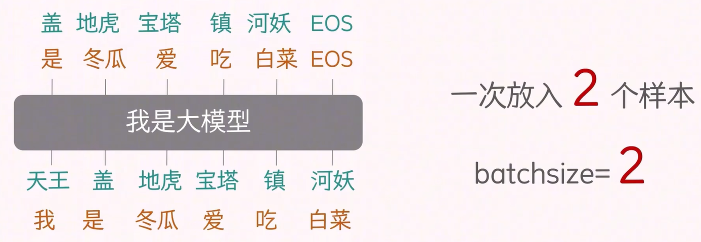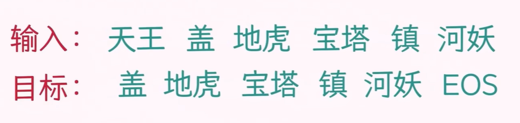 首先,这种配对方式是为了适应训练阶段的 Teacher Forcing 过程,它允许模型并行计算多个预测任务。以一个包含 6 个 token 的序列为例,输入数据是“天王 盖 地虎 宝塔 镇 河妖”,而目标数据是“盖 地虎 宝塔 镇 河妖 EOS”。这里,输入序列比目标序列提前一个 token,实现了所谓的 shift-right 配对。