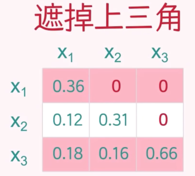 当前的注意力得分矩阵仍存在较大问题。在训练阶段,对于 token X2 来说,token X3 是其后续的 token,如果模型在计算注意力时对 token X3 分配了权重,就等于在训练时提前“泄露”了答案。