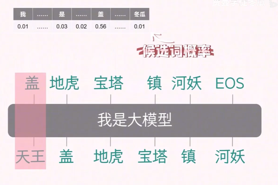 在推理阶段,模型会根据当前上下文预测下一个词。最简单的方式是选择概率最高的词(贪心策略),但这种方法存在两个问题: