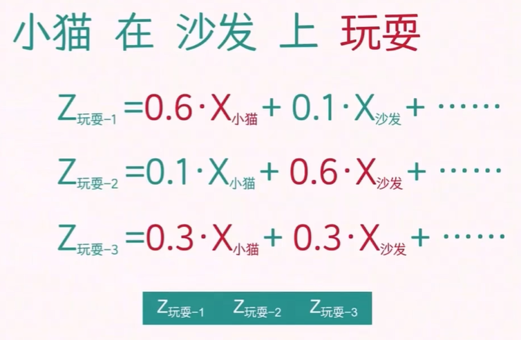 第三个注意力头,可能扫描整个句子,给所有词平均的注意力权重,从而感受这个动作发生的整体氛围。