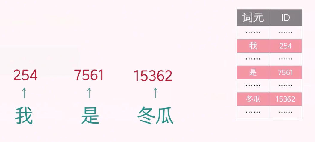 进行 token embedding 操作时,我们取出准备好的训练数据,将输入数据的 token 在 token-ID 表中进行检索,匹配得到 ID。