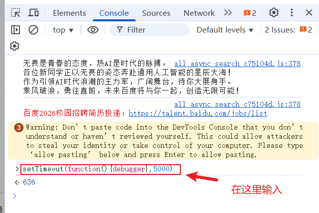 有的下拉框只要你鼠标移动开,下拉框就消失了,我们就定位不到。可以使用下面这串代码,输入在控制台中,5秒后页面就会冻结住