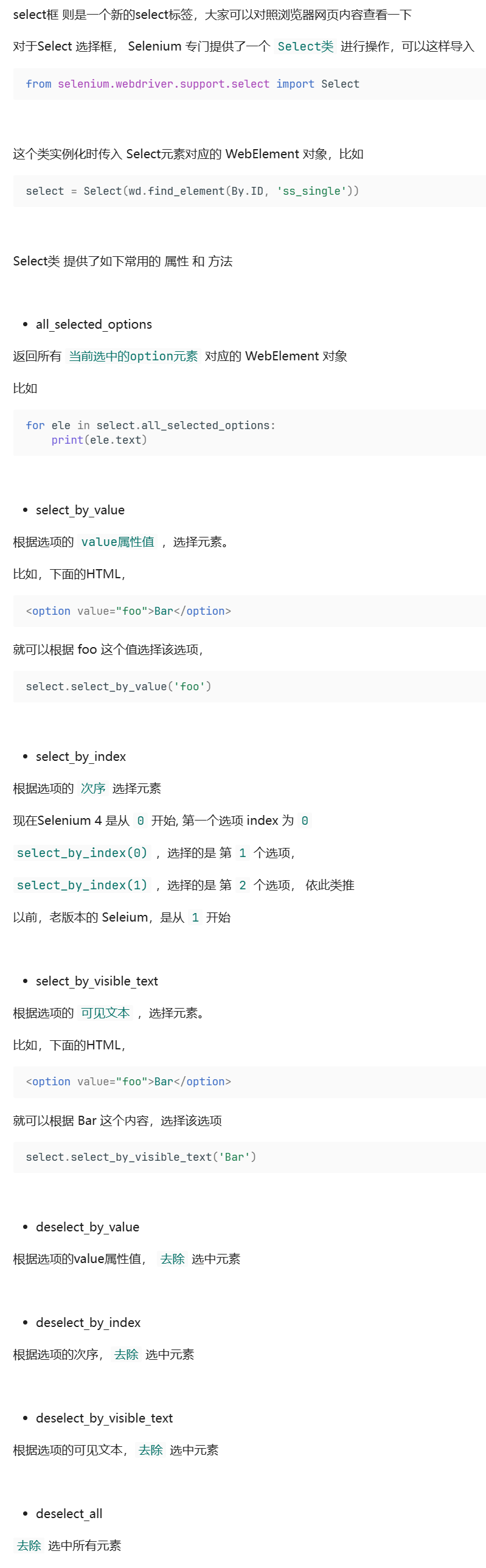 from selenium.webdriver.support.select import Select# 获取当前选中的选项
