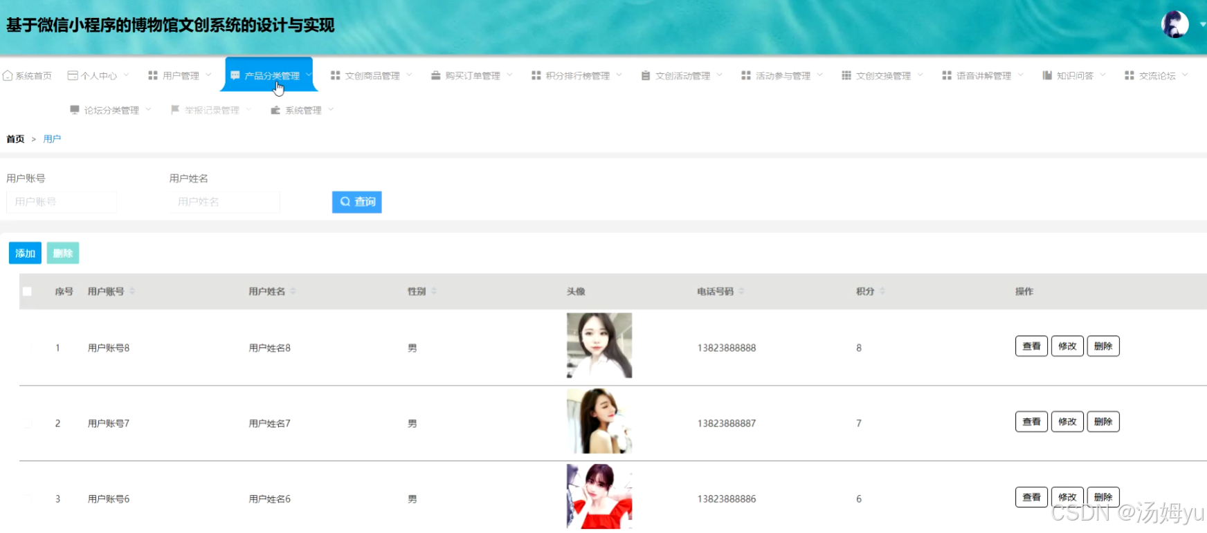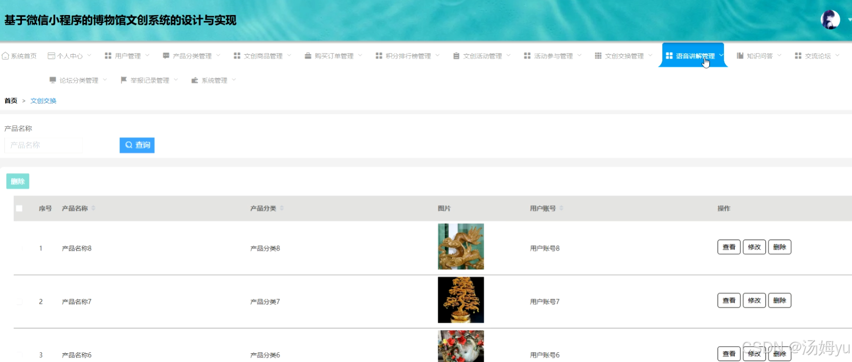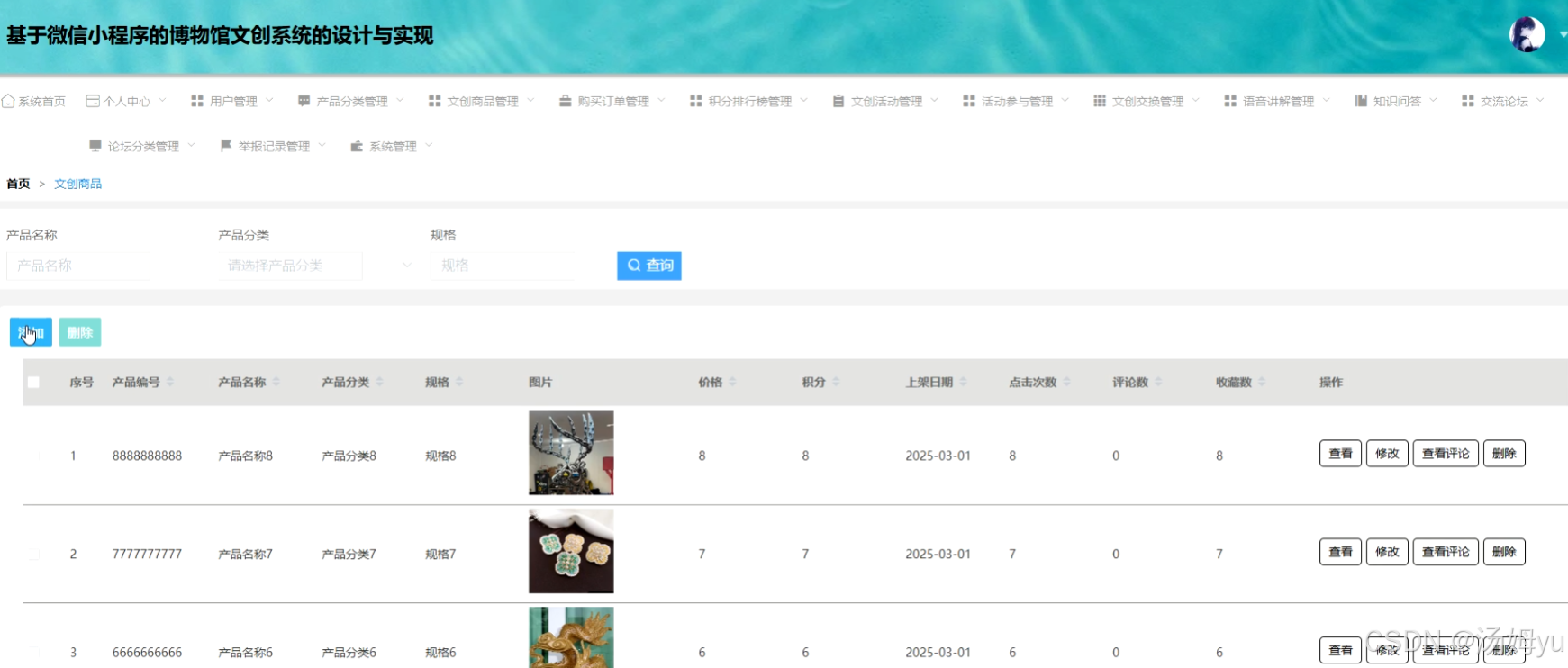 基于微信小程序的博物馆文创系统从理论层面来看,该系统的研究将为博物馆文创产品的数字化推广提供新的思路和方法,丰富和完善文创产业的理论体系。从现实意义来看,该系统通过整合文创商品、文创活动、文创交换、语音讲解、积分排行榜和交流论坛等功能,不仅提升了文创产品的传播力和影响力,还为公众提供了一个全方位的文化互动空间。系统利用微信小程序的便捷性和高效性,降低了开发成本,提高了用户体验,符合移动互联网产业发展的“微、小、轻”趋势。通过这些功能的有机结合,博物馆文创系统不仅推动了博物馆文创产业的发展,还为公众提供了更加便捷、高效的文化服务,促进了文化的传播与教育功能的发挥。
