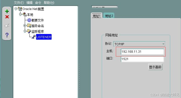 ORCL =(DESCRIPTION = 服务器连接本地数据库的时候也要给固定IP(ADDRESS = (PROTOCOL = TCP)(HOST = 192.168.11.31)(PORT = 1521))(CONNECT_DATA =(SERVER = DEDICATED)(SERVICE_NAME = orcl)))