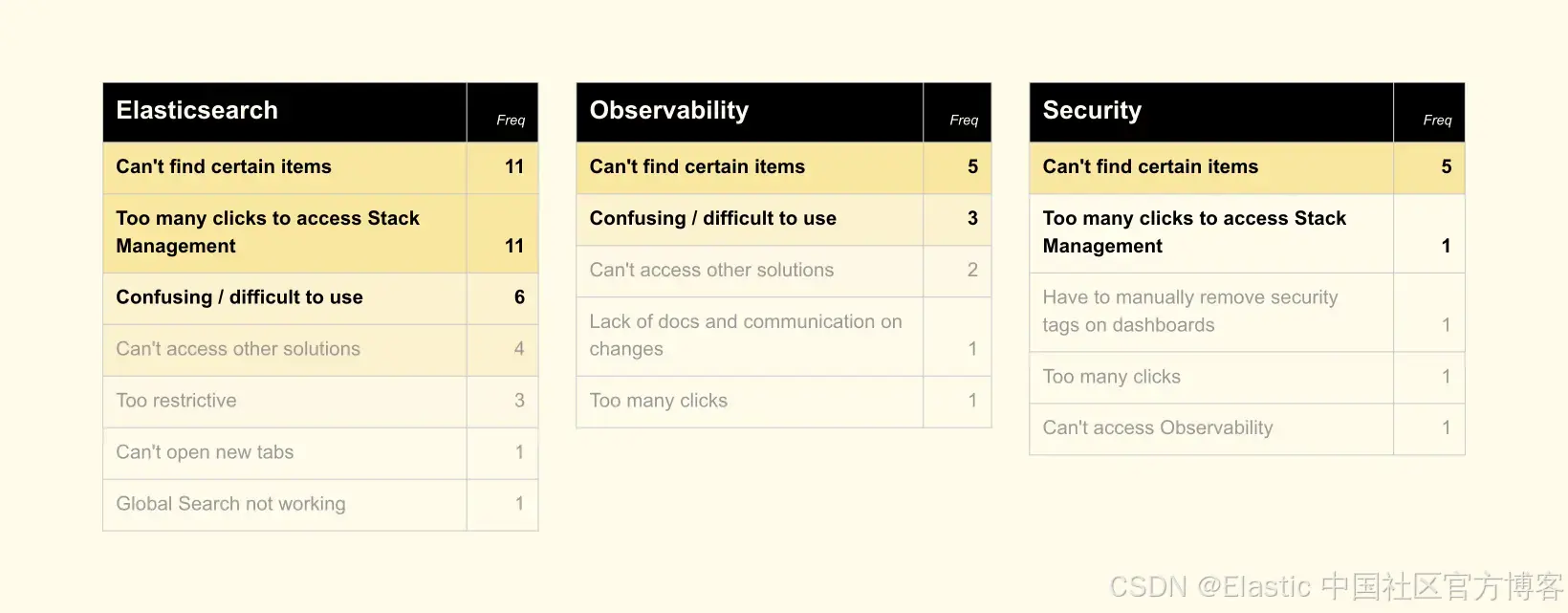 我们在 2024 年 11 月随 serverless 一起引入了解决方案视图。自那时起,我们收到了大量来自客户和社区的反馈。超过 70% 的用户对新导航感到不满。像 Stack Monitoring 这样的重要应用缺失。尤其是管理员,在切换子菜单(如 Users 和 Roles)时,Stack Management 会消失,导致完成工作流程的点击次数和鼠标悬停时间翻倍。折叠模式下,仅访问菜单就需要多次点击。