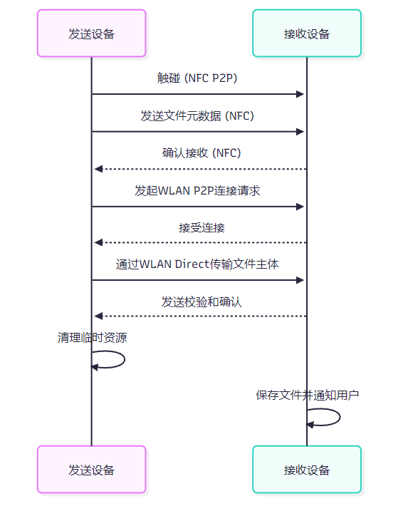 - 智能路由:系统根据文件大小、网络环境和设备状态,自动选择最优的传输通道(NFC, WLAN, 蓝牙)。