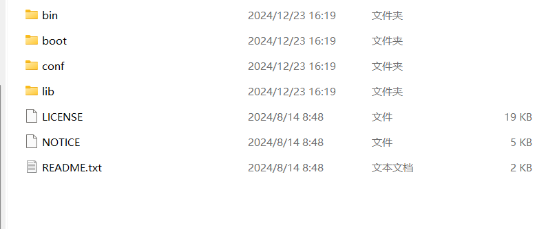 lib:含有 Maven 运行时所需要的 java 类库 LICENSE.txt, NOTICE.txt, README.txt 针对 Maven 版本,第三方软件等简要介绍