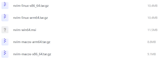 这里为大家提供了 Neovim 多个版本的安装包: