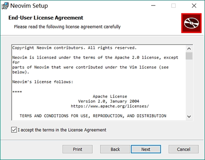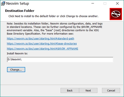 1) 从网盘中下载 nvim-win64.msi 安装程序,双击它启动,出现下图界面直接点击 Next: