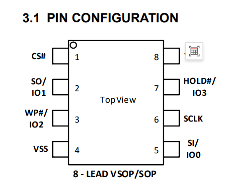 UC25HQ80IB (8m位) 串行闪存支持标准串行外设接口 (SPI),并支持双/四SPI: 串行时钟,芯片选择,串行数据I/O0 (SI),I/O1 (SO),I/O2 (WP #),和I/O3 (保持 #)。双I/O和双输出数据的传输速度为208Mbits/s和Qua