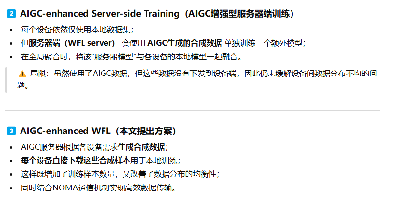 然而,还没有工作将 AIGC 与 NOMA 同时结合到 WFL 框架中。这正是本文的研究空白与创新点所在。