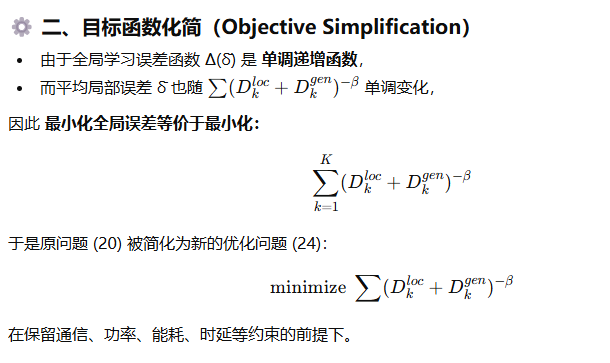 [12]:研究了 学习与通信资源联合优化 问题,目标是最小化总能耗,并通过迭代算法求得局部最优解。