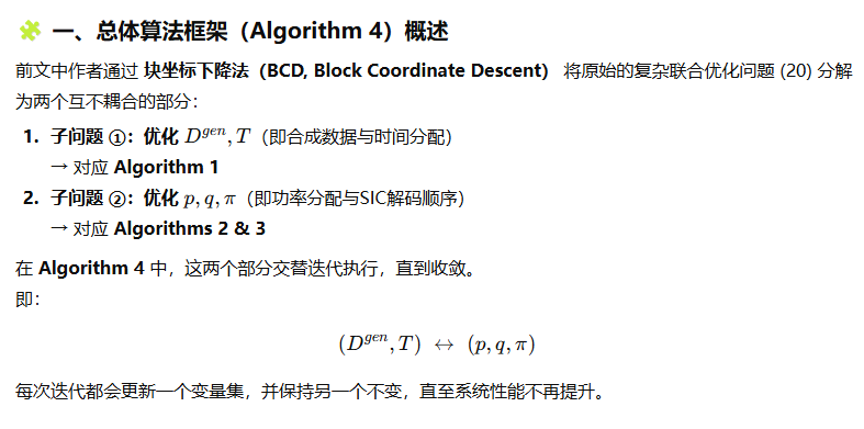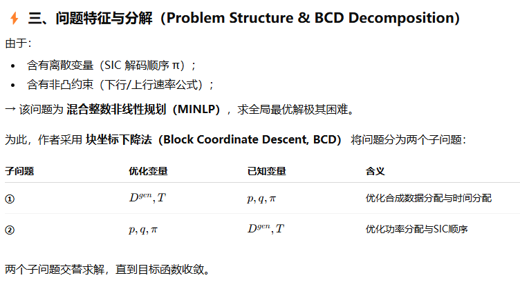 采用 块坐标下降法(BCD) 分解为两个子问题: