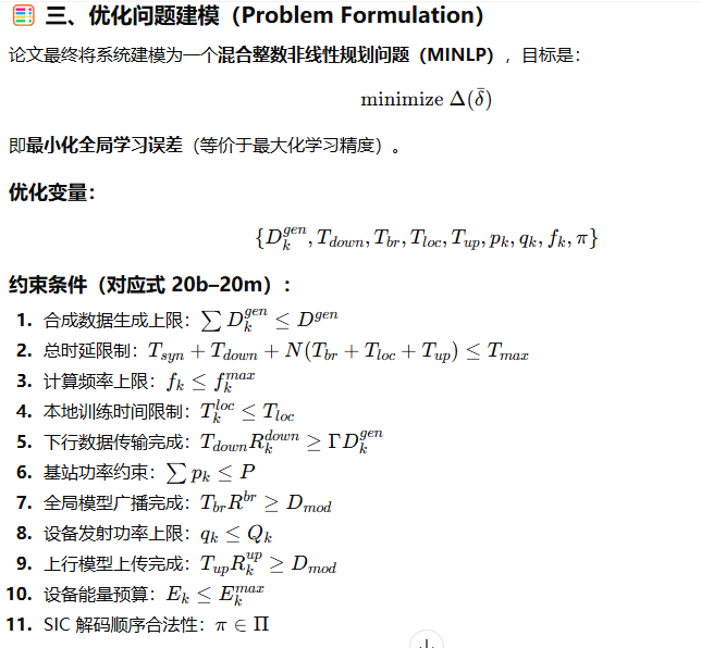 这部分系统模型奠定了后续优化问题的基础,描述了: