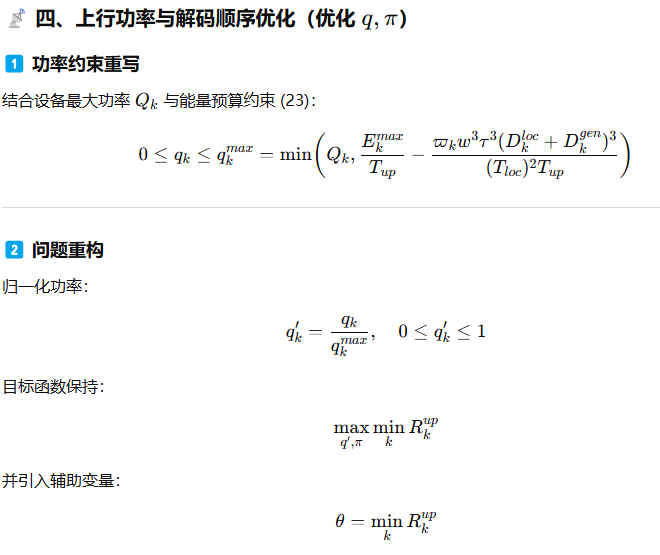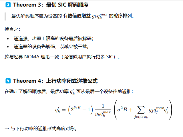 子问题2: 优化功率分配与 SIC 顺序(递归与闭式解相结合);