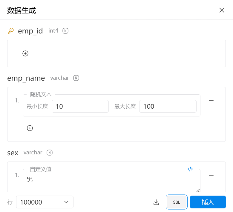 - 数据生成:快速批量生成大量测试数据库,提供各种数据生成规则,支持直接插入或者导出 SQL 脚本文件。