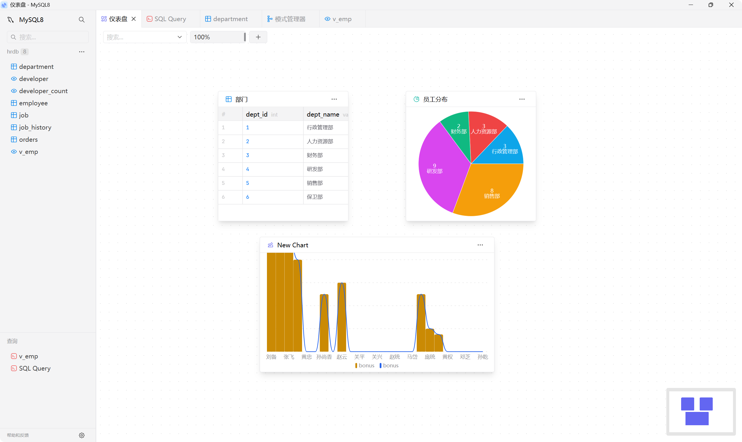 - SQL 查询:提供内置的 SQL 语句编辑器,支持语法高亮、代码补全、格式化、自动保存等功能。