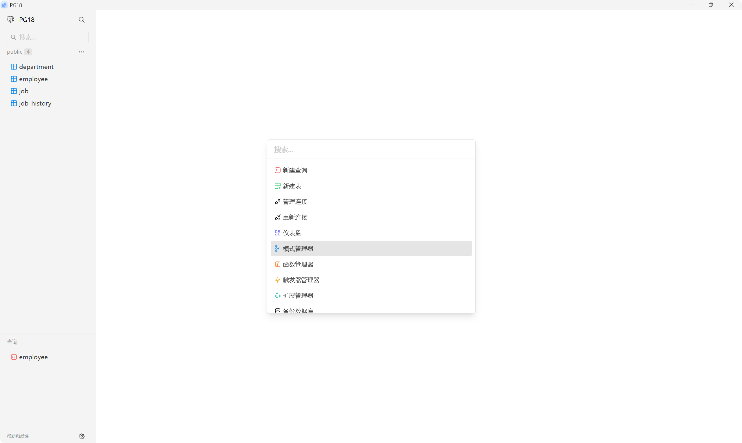 - 对象管理:提供数据库、模式、表等对象的创建、修改、删除操作,同时提供 SQL 预览。
