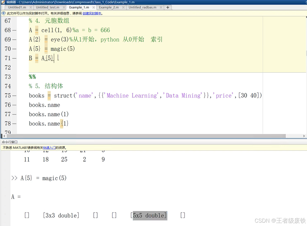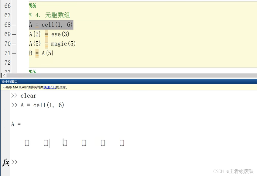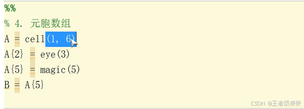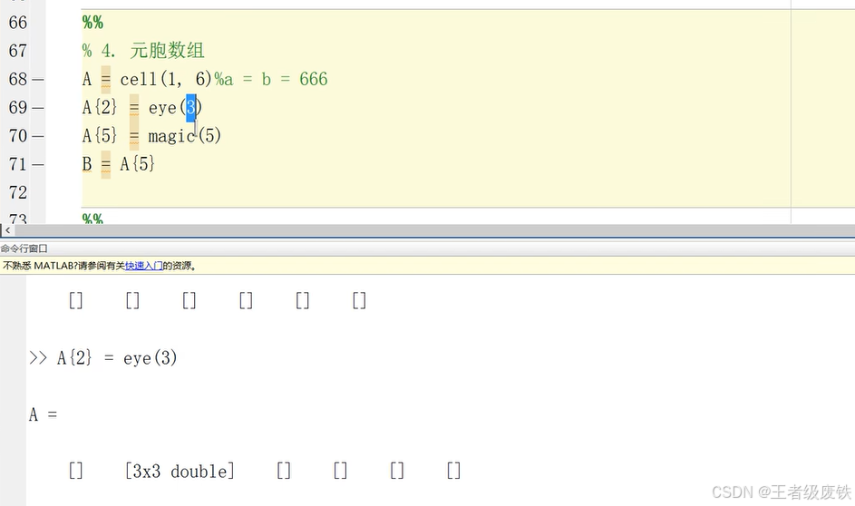 A{2}代表数组第2位,matlab从1开始的,而C语言从0开始