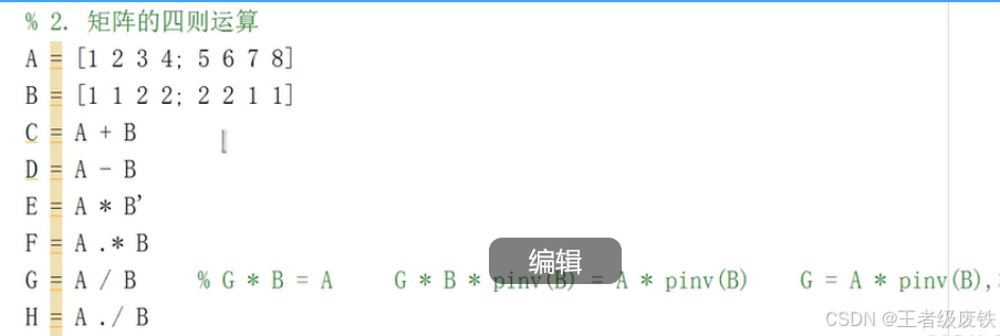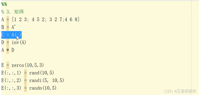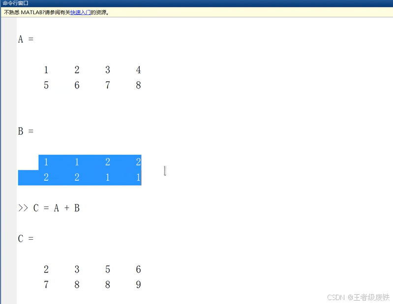 四、matlab的矩阵操作