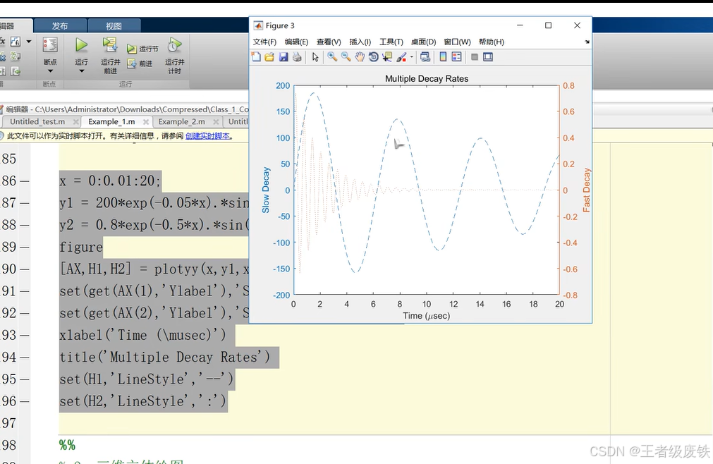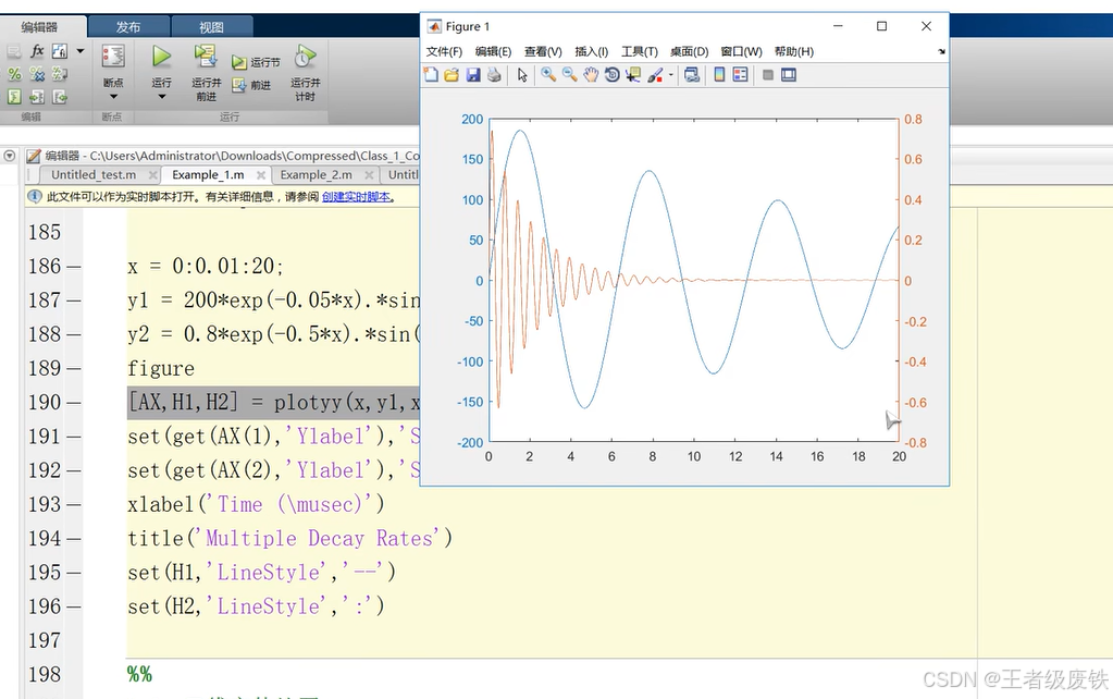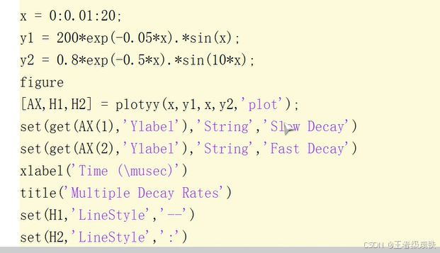 上面这个图是只运行到plotyy这句,后面就会修饰整个图形