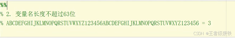 - 变量名长度不超过63位(MATLABR2012a32bit和64bit计算机上测试结果)