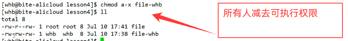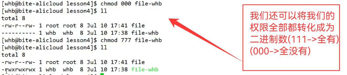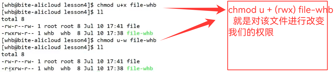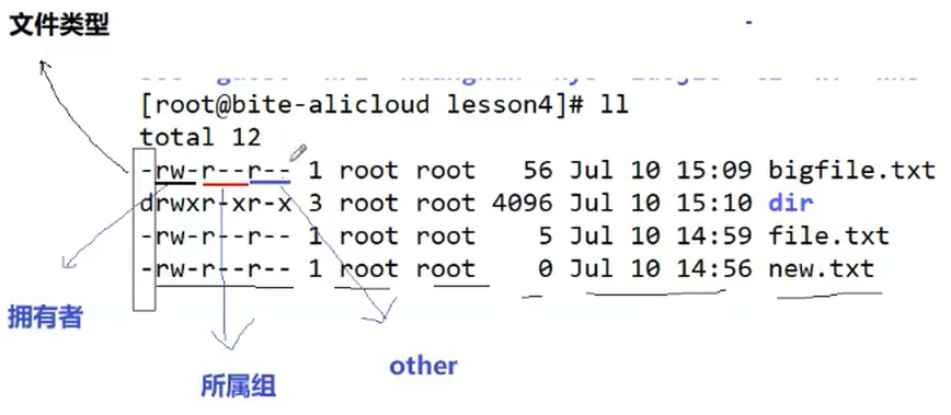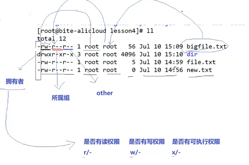 (r : 读权限) (w : 写权限) (x : 可执行权限) (- : 没有权限)