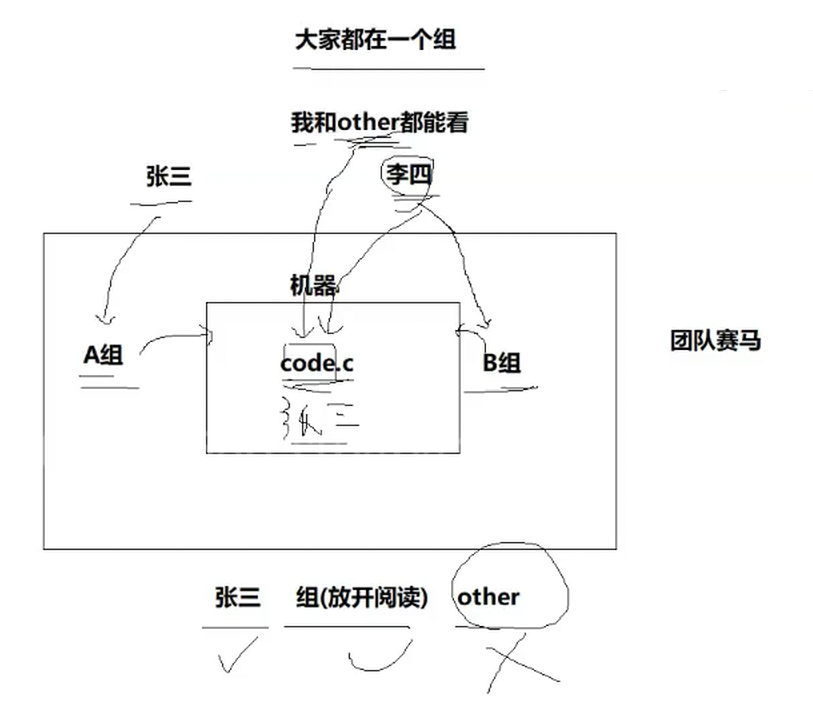 所谓的权限,除了拥有者,所属组,other之外,每一个人都还有各自的权限(rwx-权限)
