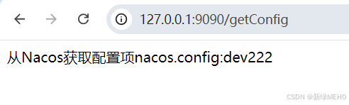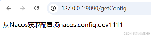 public class NacosController {@Value("${nacos.config}")private String nacosConfg;@RequestMapping("/getConfig")public String getConfig(){return "从Nacos获取配置项nacos.config:"+nacosConfg;}