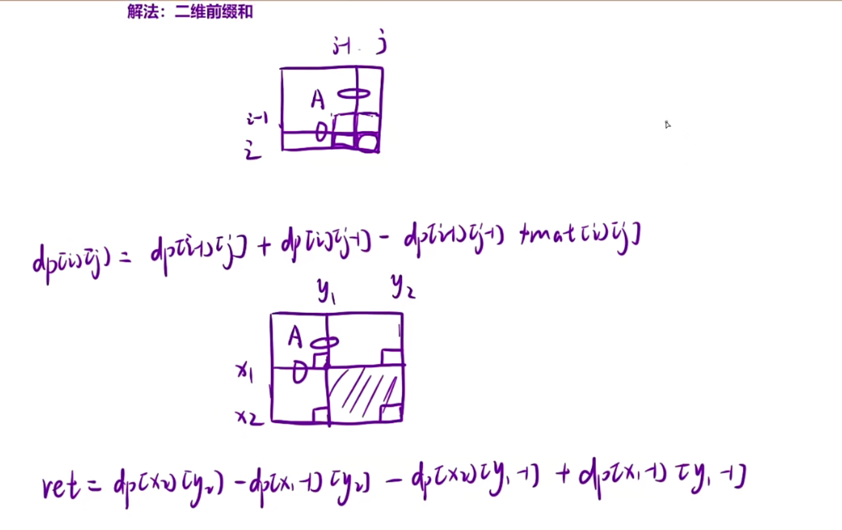 前缀和计算ret的时候需要知道左上角和右下角的坐标,所以细节一就是怎么求坐标,然后带到dp