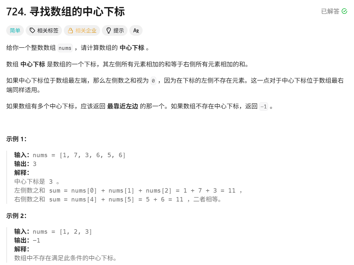 leetcode724例题