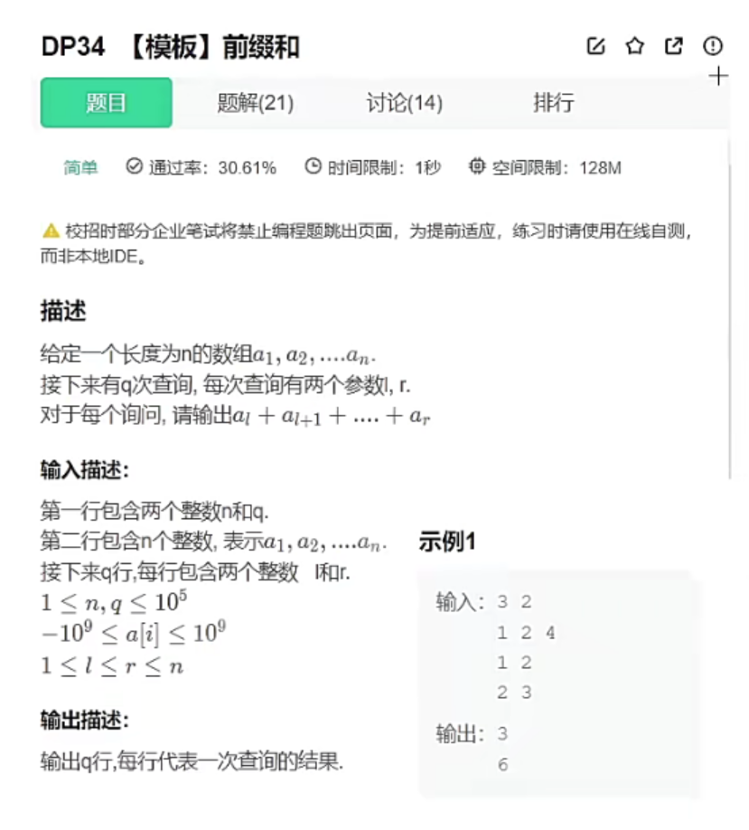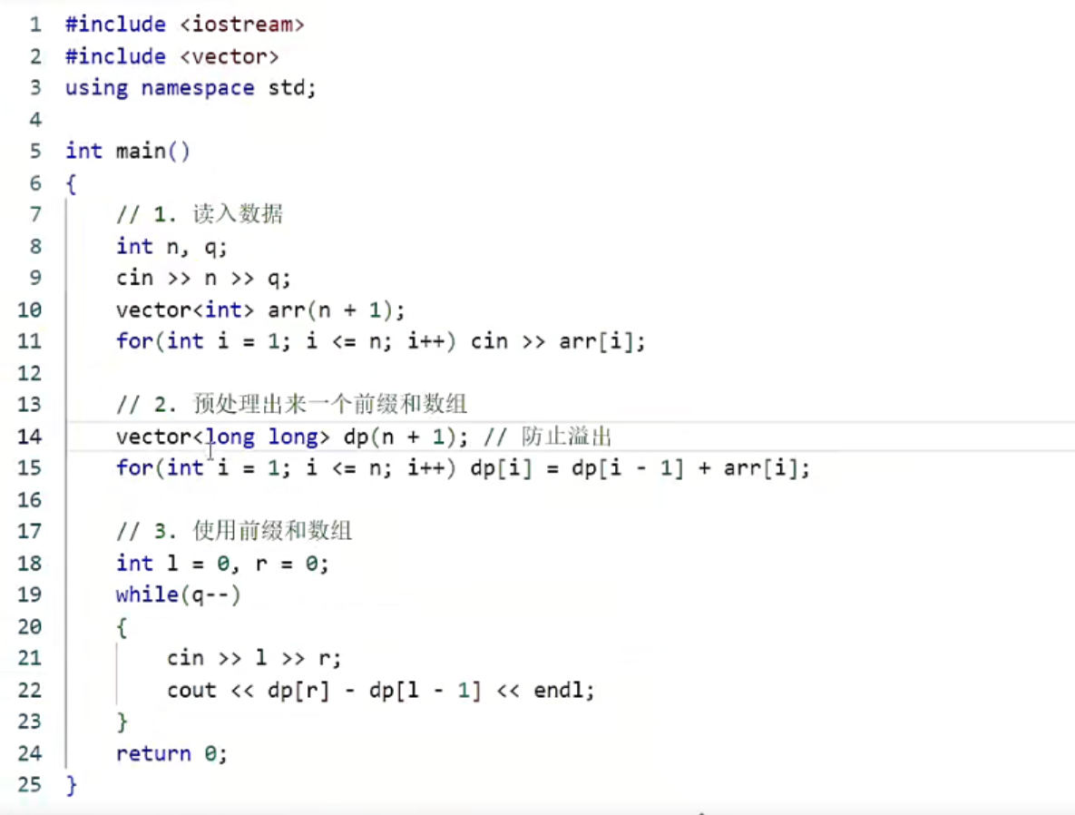 前缀和解决的问题就是给你一段数组,让求某个区间的和