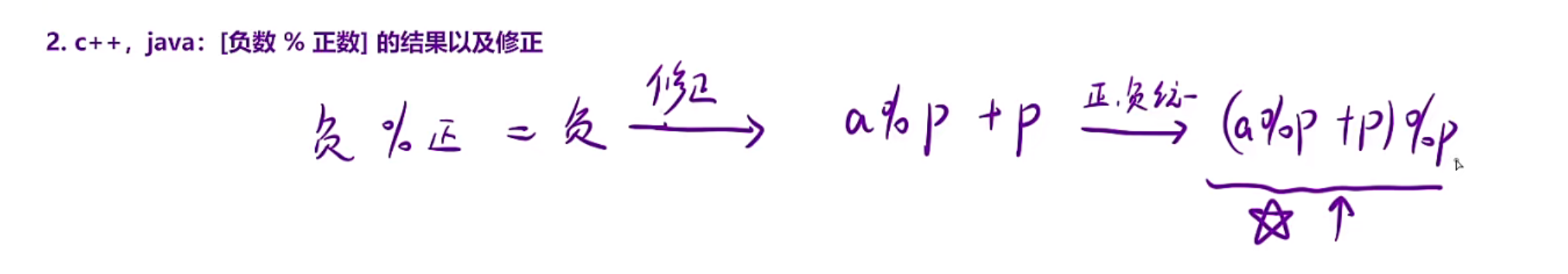 对于c++和Java,负数%正数=负数(这里和数学当中是不一样的),所以需要修正