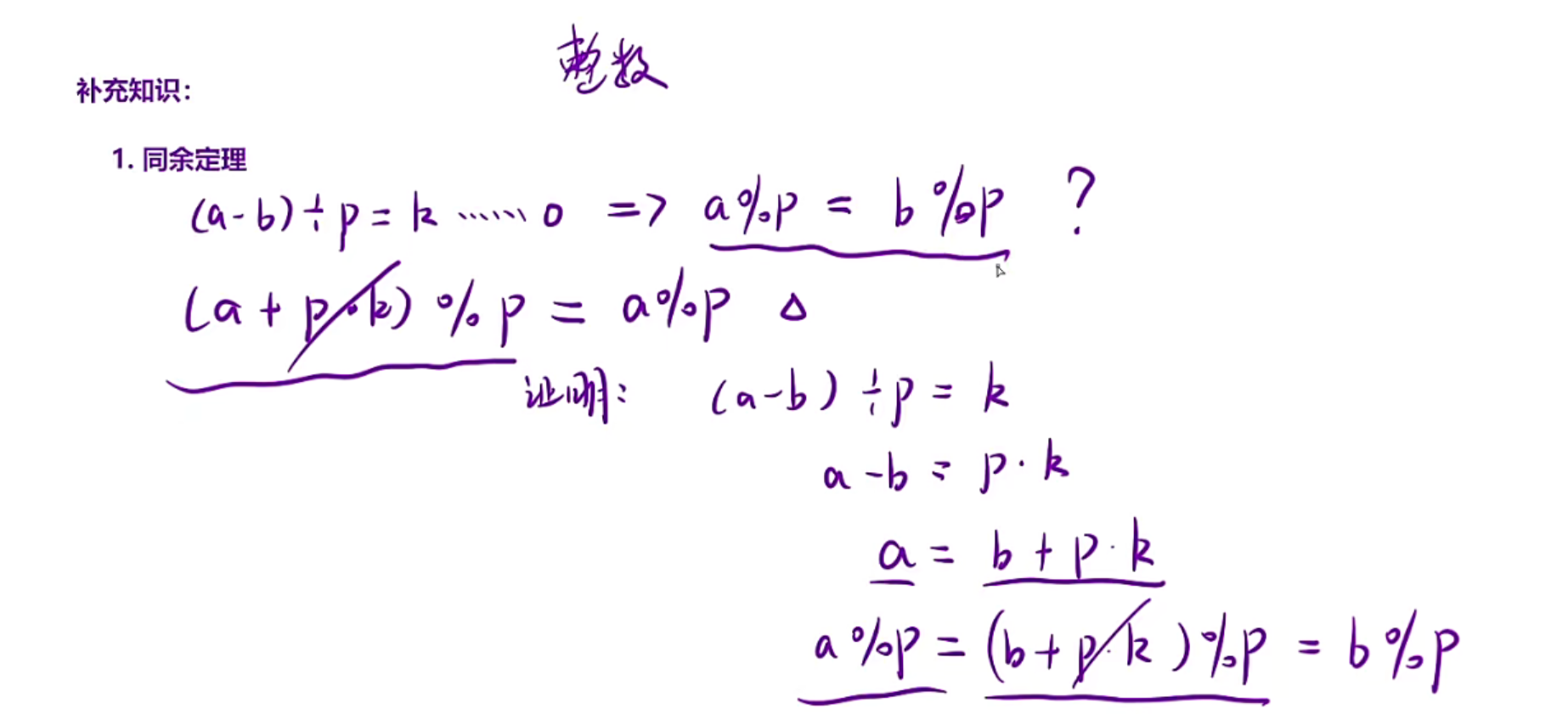 a为负数,p为正数,需要把结果负数变正数a%p+p,但是此时正数就会错,所以需要(a%p+p)%p