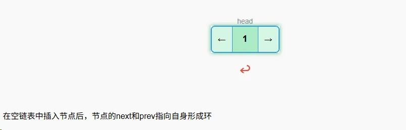 private boolean insertEmpty(double data) {DoublyNode newNode = new DoublyNode(data);head = newNode;// 自闭环:节点的next和prev都指向自身newNode.next = newNode;newNode.prev = newNode;return true;