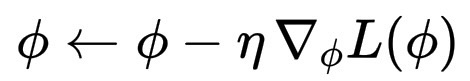 \phi \leftarrow \phi - \eta \, \nabla_\phi L(\phi)