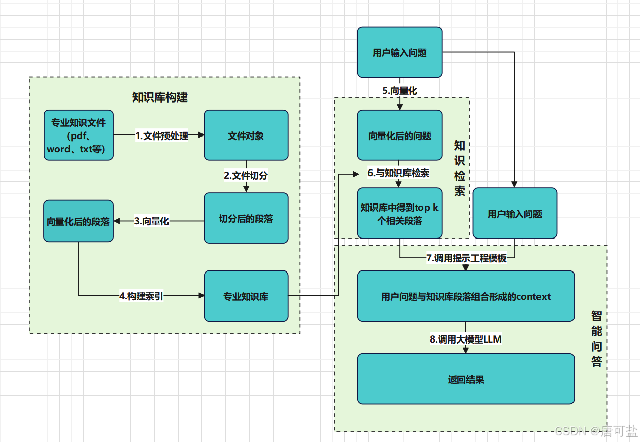 RAG通过引入外部知识库,将AI的工作模式转变为“开卷作答”。其核心流程分为三步: