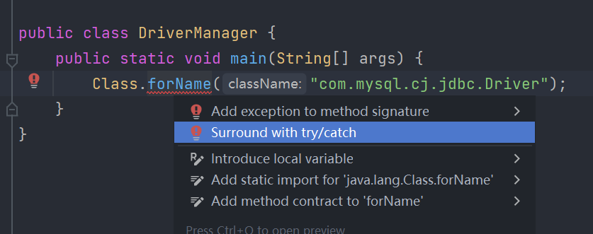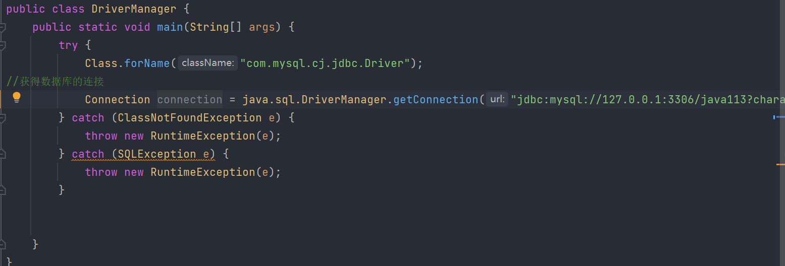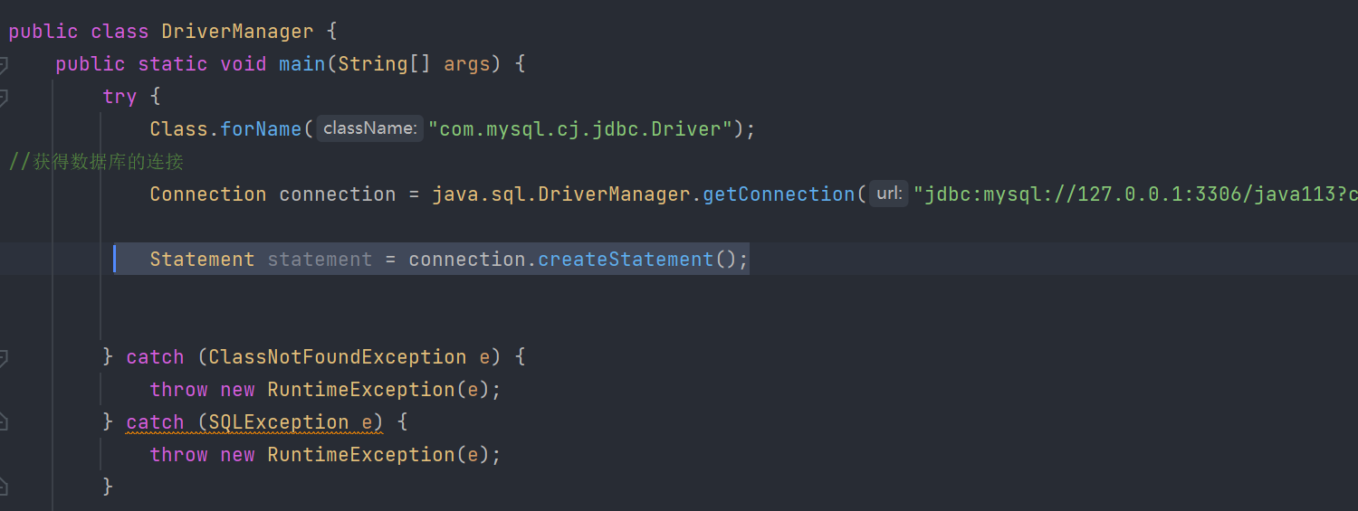 Class.forName("com.mysql.cj.jdbc.Driver");// 获取数据库连接