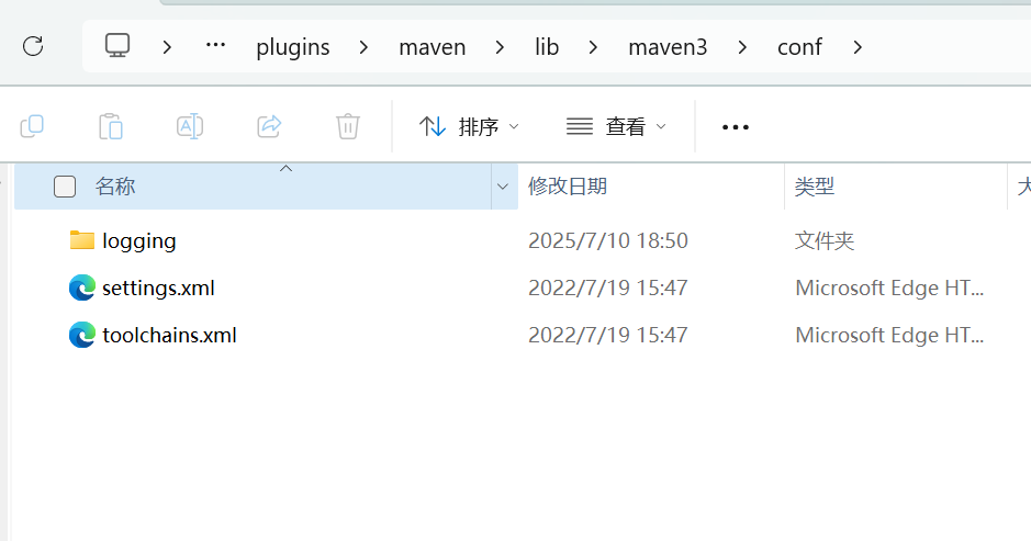 点击 conf ,找到settings.xml,这个就是我们修改的配置文件