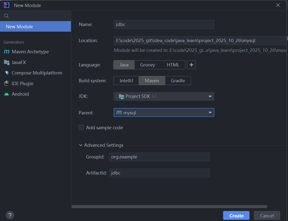 org.example),用来区分不同组织的项目。 - ArtifactId:项目或模块的具体名称,在同一个 GroupId 下唯一,代表项目本身或其中的某个模块。