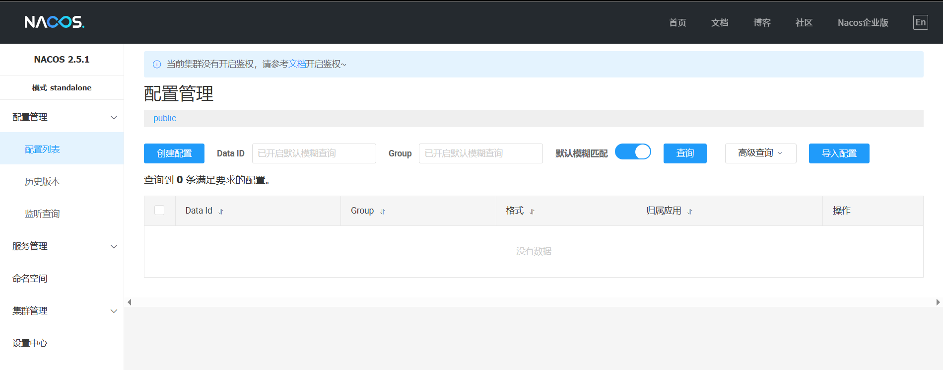 - 开启鉴权(测试环境可选):虽然在测试环境中鉴权可能不是必需的,但为了提前适应生产环境的安全要求,我们可以选择开启鉴权。在conf/application.properties文件中添加以下配置: